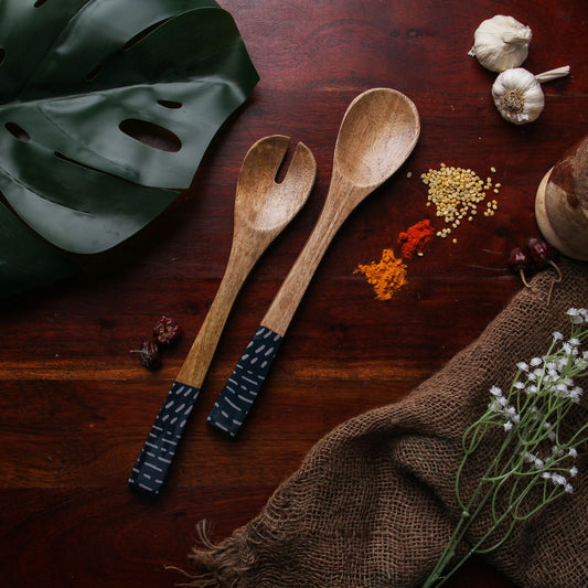 Coastal Blue Mango Wood Enameled Servers - Set Of 2