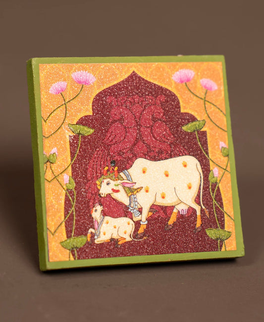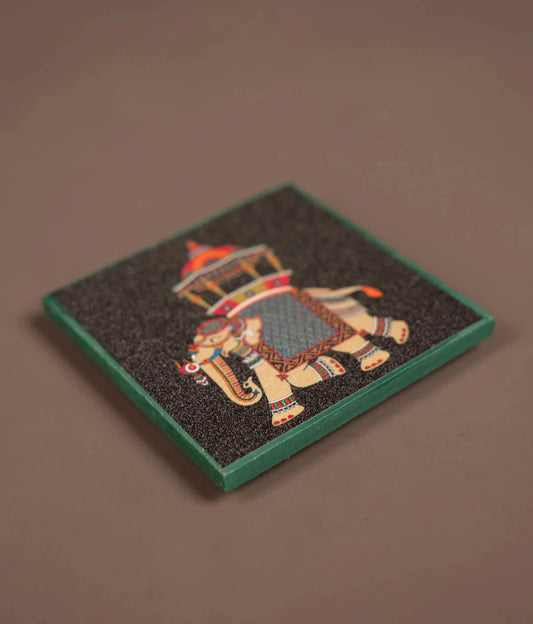 • Syama Black Elephant Printed Wooden Manai/Riser