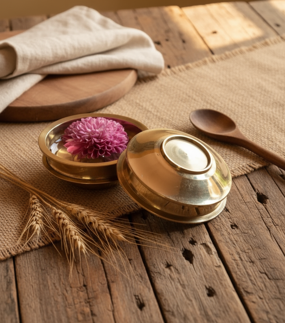 Introduce a refined touch of Kerala’s rich heritage with this exquisite set of miniature brass Urlis. Meticulously crafted, these elegant pieces embody the timeless essence of traditional Kerala design, ideal for enhancing your living space, showcasing floral arrangements, or serving as a tranquil water centerpiece. The polished brass finish imparts a warm sophistication, while their durable construction promises lasting beauty. Whether adorned with floating candles or fresh flowers, these Urlis bring a graceful blend of cultural elegance and enduring charm to any setting.