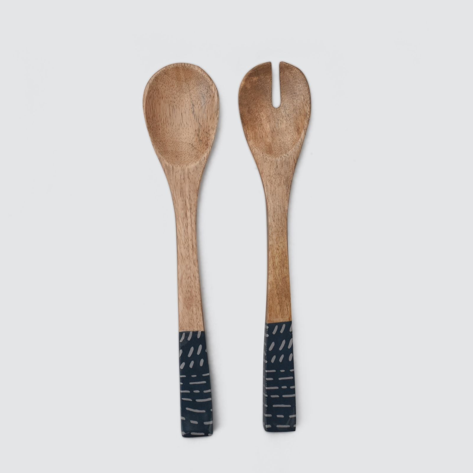 Coastal Blue Mango Wood Enameled Servers - Set Of 2